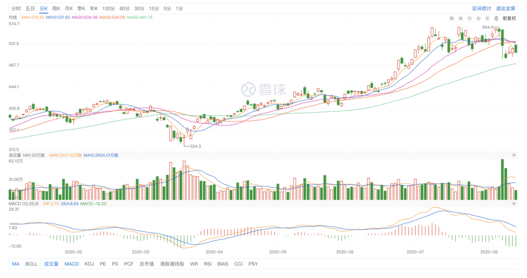騰訊股價走勢(圖源雪球)