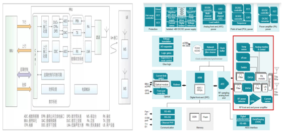 左圖為RRU的原理框圖,右圖為某全球領先的半導體公司的RRU解決方案